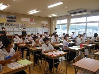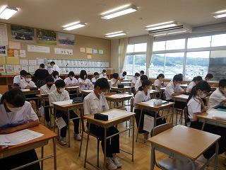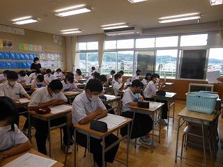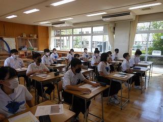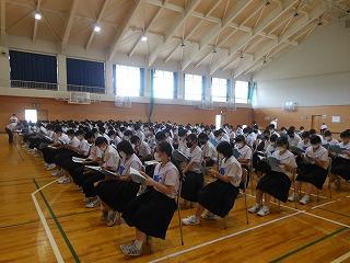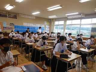 運動部新キャプテンの会議を今日昼休みに1階学習室で行いました。先日の水泳競技を皮切りに9月17~19日に河北郡市中学校新人体育大会と加賀地区中学校新人相撲大会が河北郡市内・金沢市で開催されます。その大会の壮行会も来週14日に行うため、部活動担当の村上先生から、壮行会での動きについて確認がありました。また、新チームの抱負の用紙も渡され、どんなチームを目指すのか考えている姿が印象的でした。