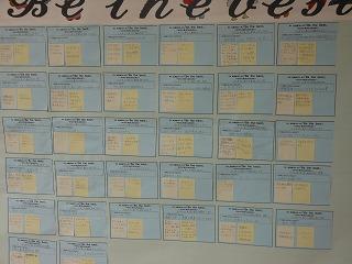 各クラスの廊下掲示板には、生徒一人ひとりの「2学期に目指す自分」が掲げられました。夏休みを終えて、心新たに登校した2学期。今の思いを大切に、77日間の2学期で自分を成長させましょう。保護者の皆様も11月2日・4日に学校公開を予定しておりますので、授業や校内の様子とともにご覧いただければと思います。