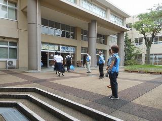 毎週水曜日は、南中見守り隊の皆様が中庭で生徒と朝のあいさつを交わしてくださっています。今日は2学期最初の水曜日、3年生がいなくて、やや静かな朝ですが、元気なあいさつの声が響いています。