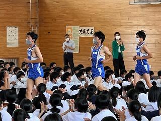校長先生からは大会に向けて激励の言葉をいただきました。校長先生は選手の皆さんに気を付けてもらいたいことについて、①身体と心のコンディション作りに気を付け、大会までの授業や練習に励んでもらいたいこと、②大会では勝ち負けにはこだわらず、まずは自分の役割に徹してほしいということ、③日頃お世話になっている方々に感謝の気持ちを忘れずに大会に臨んでもらいたいこと、の3つが話されました。