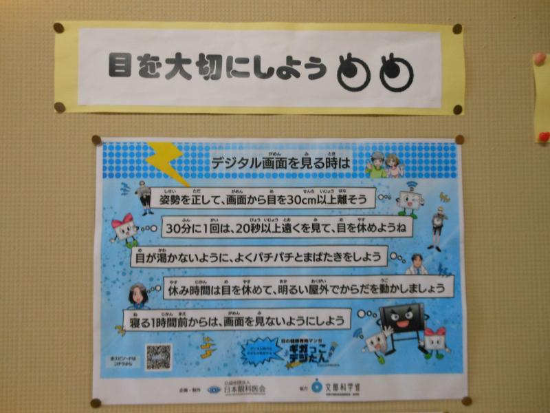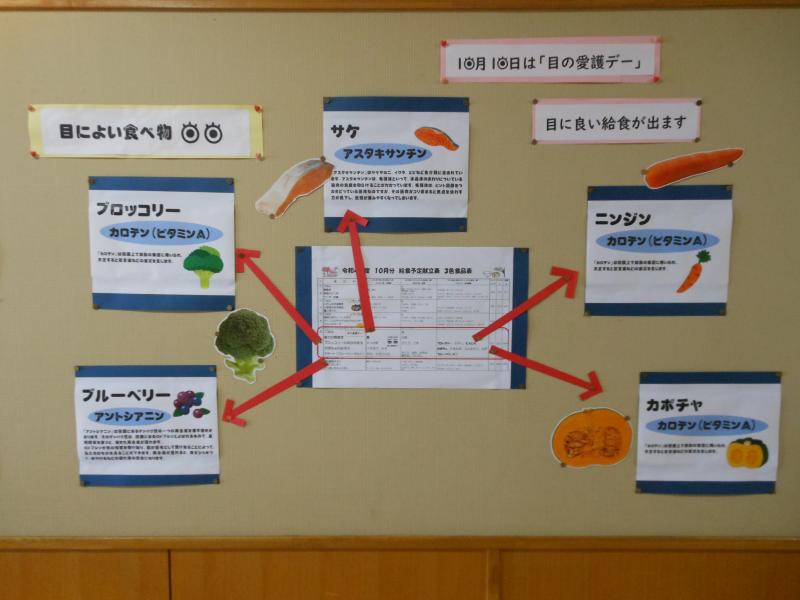 今日10月10日は目の愛護デー。9月末から保健室前の掲示板は「目を大切にしよう」と呼びかけるものになっています。まだ目を通していない人は、これを機会に一度確認してみてくださいね。