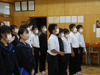 今日から後期!学級活動や生徒会活動が新しいメンバーによって始まりました。職員室にある出席簿を取りにくる副会長も緊張した面持ちでした。各クラスでは新会長が号令の挨拶です。初めて学級のリーダーになった生徒も半数を越えており、やる気が感じられました。どの生徒も早く自分の役割に慣れよう、学級や学校のために貢献しようという気持ちがあふれる初日、すがすがしい1日でした。