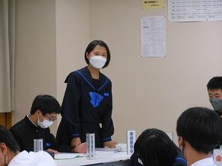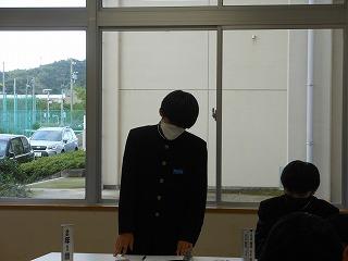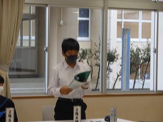 昨日放課後には後期最初の生徒議会を行いました。開会の挨拶に続き、自己紹介。議長・副議長選出の後、報告事項として各委員会の報告と学校祭の内容について確認がありました。意見交換では、冬服に移行するにしたがって名札の付け忘れが目立ってきており、各クラスで呼びかけようとの意見がありました。今日の給食時の生徒会からの連絡で早速全校生徒にお知らせがありました。