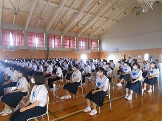 3年生も学年集会を行い、新型コロナ感染拡大第5波を受けて映像資料から学んでいました。制限された状態ではありますが、最上級生として自覚を持った生活を組み立ててほしいと思います。