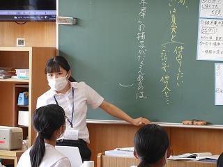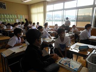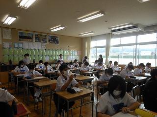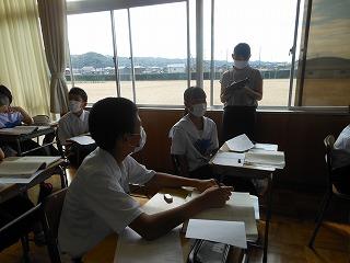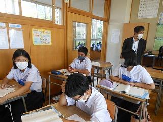 今日の2限目も金沢教育事務所の先生をお招きして、国語の研究授業を行いました。場面と場面、場面と描写などを結び付けて、内容を解釈することができるようになる」を単元の目標として、「銀木犀の描写がたくさんあるのはなぜか」を課題に、学習活動に取り組みました。グループ交流をもとに、銀木犀の花を落とす描写や銀木犀の木からくぐり出る描写には、夏実との関係にこだわることをやめ、前向きに歩んでいこうとする「私」の決意が表現されていることをつかんでいました。
