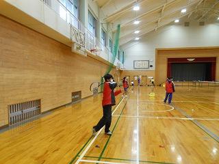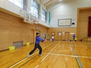 午後からは男子ソフトテニス部のみが体育館で練習をしています。顧問の先生の指導を受けながら、正確にボールをとらえて打つをテーマに取り組んでいました。