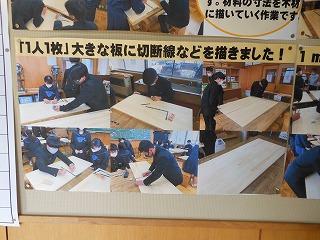 3年生の3学期の技術では、職員室前の各クラスのロッカーを卒業生作品として作ろうに取り組んでいます。作業工程表に基づき、5クラスで分担して作っています。今週で切断が終わり、来週から部品加工に入ります。
