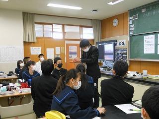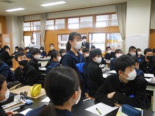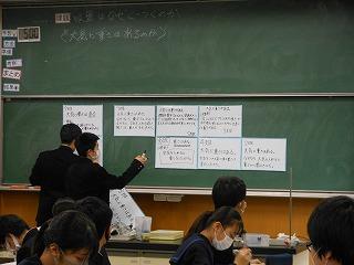 昨日の6限目は理科の研究授業を行いました。第2理科室で2年5組の生徒が課題「吸盤はなぜくっつくのか」に取り組みました。その課題を解決するために、大気には重さがあるのかどうか実験で確かめました。その結果、大気にも重さがあり、大気圧(重さのある空気の圧力)によって壁に付くということが分かりました。