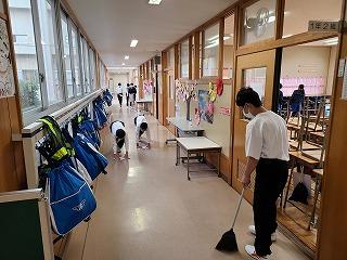 今週火曜日から、全校で清掃が始まりました。集会で中先生からお話があった無言清掃の取組。役割分担した清掃に加えて、気づきの清掃の時間には「より過ごしやすい環境にするには」と一人ひとりが考えて黙々と取り組んでいる様子が見られます。