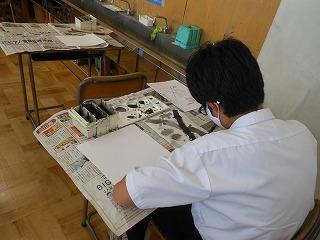 技術・美術は4月から新しい先生が着任し、授業のスタイルも昨年度までと異なっています。授業が始まって2ヶ月経ち、授業のペースにも慣れてきたようです。発表には意欲的に、制作の際は静かに自分と向き合いながら作品づくりに取り組んでいます。