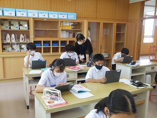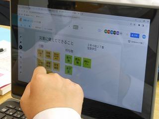 2年生の家庭科では、住まいの学習で「災害に備えてどんな準備をしたらよいか」を課題に学習を進めています。1人1台端末を活用し、まとめたレポートをジャムボードで整理しました。