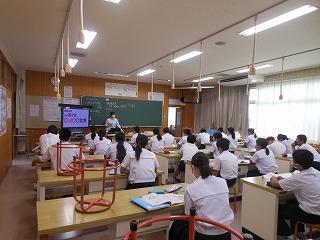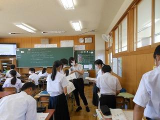 1学期の期末テストは29日に行います。先週末の大会の疲れも徐々にとれ、期末テスト前の授業にも力が入ってきました。英語ではペアワークで理解を深め、国語では鑑賞文の書き方を学習していました。