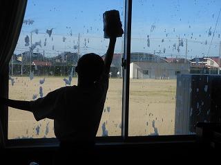 △部活動ごとに場所を割り振り、窓をきれいにしました。