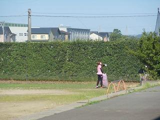 △グラウンドの草刈りは草刈り機をもっておられる保護者の皆様と自主参加の生徒の協力を得ました。
