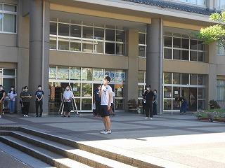 本日は早朝から約200名で環境整備作業を行っていただきました。草刈りは日頃から校務員の葭田さんがこまめに整備してくれていますので、グラウンド周辺を草刈り機できれいにしていただきました。窓ふきは中庭側から高圧洗浄機で、校内からは生徒や保護者がクモの巣を取り、ガラスマイペットで表面をピカピカにしてくれました。