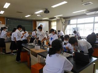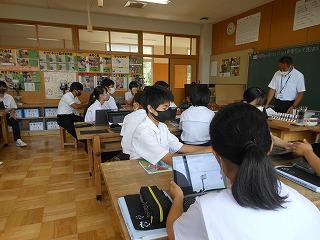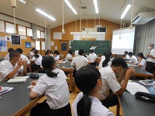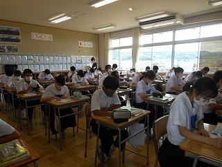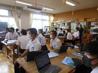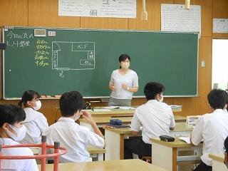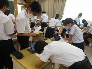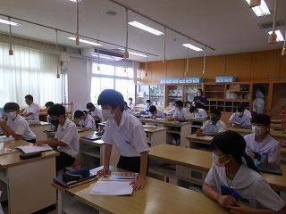 今日は朝から多くのお客様が来校されました。津幡町教育委員会の皆様と石川県教育委員会の皆様に校内や授業の様子を参観いただきました。週明けの月曜日で、湿度の高い1日となりましたが、意欲的に活動している生徒たちの姿がいろいろな教室で見られました。