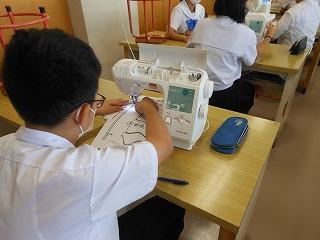 住まいの学習を終えた2年生では「衣」の分野の学習が始まりました。布を用いた物の製作に向けて、ミシンの使い方の練習に取り組んでいます。