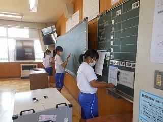 昨日の終業式前は教室の棚やロッカーの水拭き、机・椅子の足のホコリ取りなども含めて大掃除を行いました。1学期の最終日ということもあって、3ヶ月半使った場所をきれいにしようと頑張る姿がいろいろな箇所に見られました。