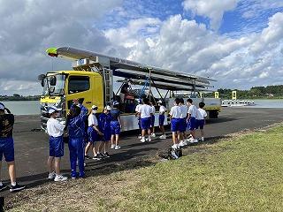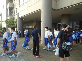 ボート部が宮城県登米市で行われる第42回全日本中学選手権競漕大会に向けて出発しました。午前5時30分過ぎから生徒が集まり始め、6時にバスは出発しました。今日は移動日、明日会場練習を行い、土日の大会に臨みます。