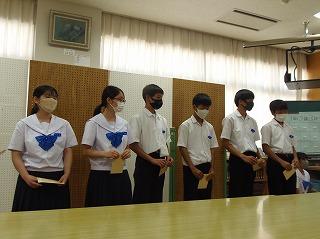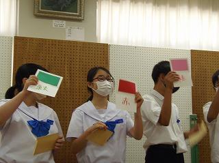 全校集会の後半には9月22日に行われる第24回運動会の団割を行いました。今年は3年生が6クラスのため、緑団が増えて6団となりました。