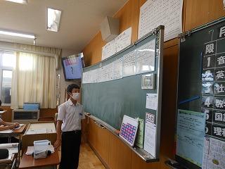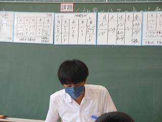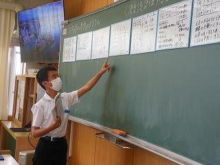 3年生の社会科は、7月から公民分野の学習を始めました。第1章は『現代社会と私たち』で現代社会の特色や課題、課題を解決するためにどんな見方・考え方が大切にされているのかを学んでいます。第3節では、学校の部活動の体育館使用割をめぐるトラブルをどう解決しようか、効率と公正の考え方でグループ学習を進めています。