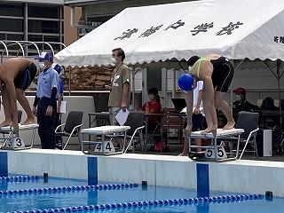 昨日、河北郡市中学校新人体育大会の先陣を切って、水泳競技が津幡中学校プールで開催されました。本校からも2名の選手が出場しました。