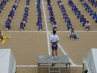 先ほどの「私速いんです。~私バトンミスしないので~」をもって、運動会の競技を終えました。11時前後に小雨模様となりましたが、本降りは免れ、全競技を終えることができました。午後からは閉会式と解団式を行います。