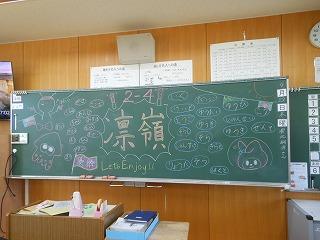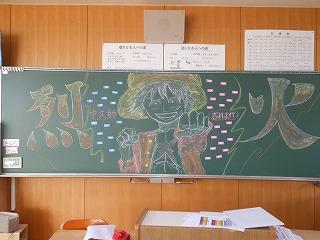 昨日の朝は各クラスの黒板に3年生からのメッセージがありました。登校した生徒たちは朝黒板を眺めながらハチマキをして、グランドに向かいました。