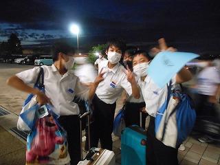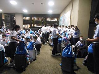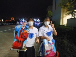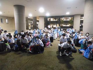 午後6時45分に6台のバスが学校に到着し、解散式を行いました。今日は各家庭で思い出話に花が咲きそうですね。