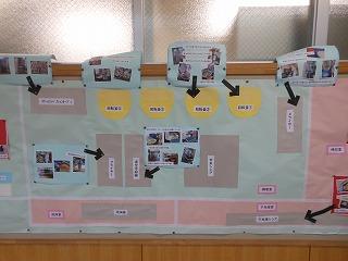 給食室前の掲示板もリニューアルしました。給食室内がどうなっているかや給食の主菜や副菜の栄養について掲示されています。食欲の秋、栄養についても考えたいですね。
