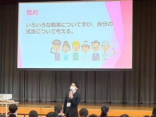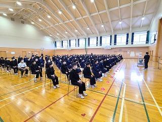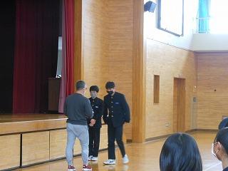 百人一首大会の表彰と職業調べのオリエンテーションを行いました。
