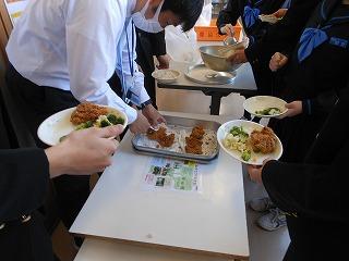 今日の給食は3年生だけ特別メニュー。ジャンボカツ(勝つ)カレーと伊予柑(いい予感)ゼリーでした。