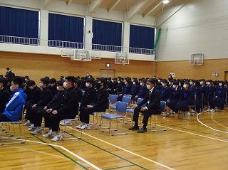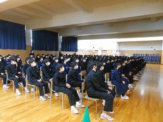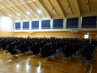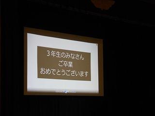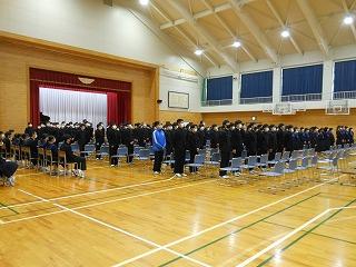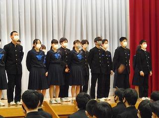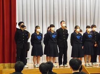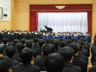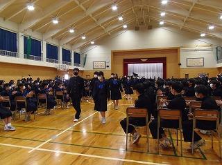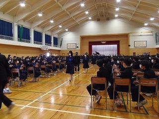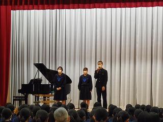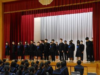 最後に、3年生全員で明日卒業式で歌う「旅立ちの日に」を1・2年生の前で披露して会を閉じました。明日の卒業式は3年生とそのご家族2名以内で行うため、1・2年生は休業日となります。