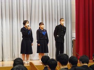 それを受けて、3年生の代表3人が後輩へのメッセージを伝えました。