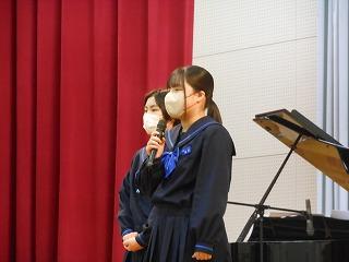 次に、1・2年生の代表がリレー形式で贈る言葉を伝えました。