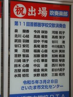 吹奏楽部は昨日の合同演奏会に続いて、明日はさいたま市で開かれる第11回首都圏学校交歓演奏会に参加します。今日も朝9時には登校し、学校で練習を行い、午後0時40分に現地に向かいました。明日の本番は14時32分、明日の歳時記でライブ配信のご案内をいたします。
