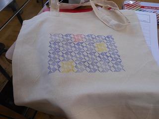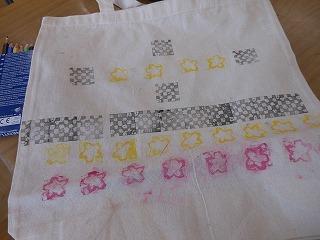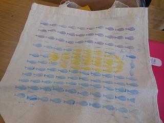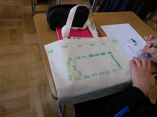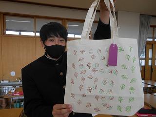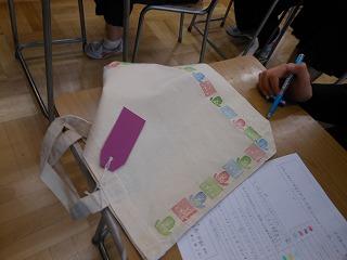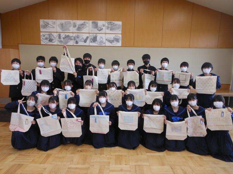 活動に取り組んだ後、クラスで制作したトートバッグをもって記念写真を撮りました。