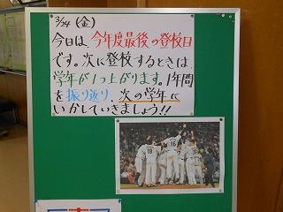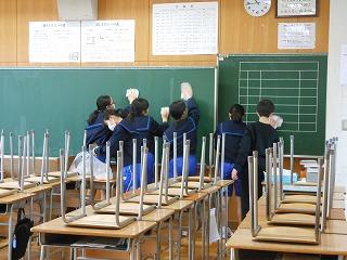 今日で令和4年度の授業を終えました。今日は午前中に各学年ごとに学年集会と学活を行い、大掃除で教室や掲示板、窓の清掃をしました。その後、修了式では永井校長先生の訓示に続いて、春休みの過ごし方を含めて、生活面・学習面の話を聞きました。