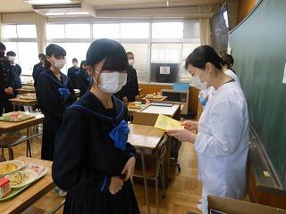 2年1組では調理員さんにメッセージカードをお渡ししました。
