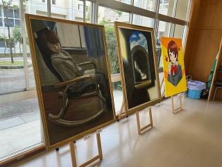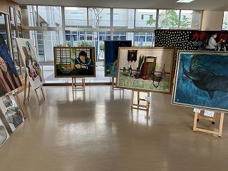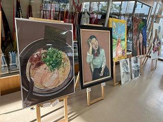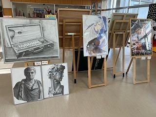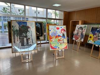 油絵やデッサン画、水彩画やデジタルアートなど多彩な表現方法によって描かれた作品で、展示ホールは彩られています。本校生徒たちもいろんな作品を見て楽しんでいます。展示は明日まで行われます。