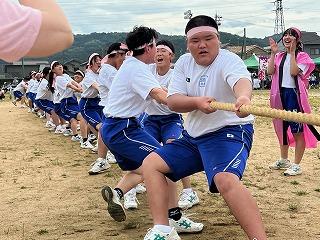 PTA参加競技の綱引き(君の縄)も行われ、生徒の優勝チームと対戦し、見事PTAチームが勝利しました。