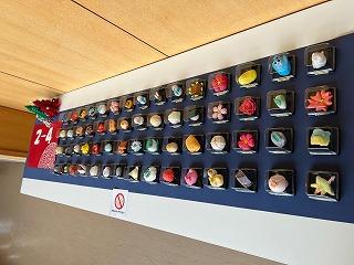 先日お伝えした2年生の和菓子サンプルですが、保護者懇談中は3階2年生の教室前に飾られています。