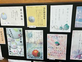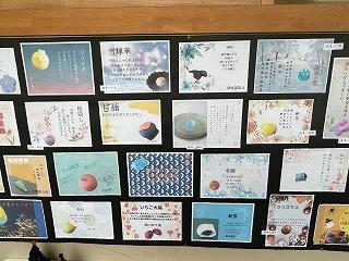 作成した和菓子の写真に、和菓子で表現した世界観を言葉で表し、合わせて展示してあります。