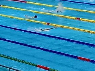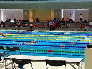 1年生は初めての公式大会に出場。緊張しながらも失格にならず、頑張って泳ぎ切ることができました。