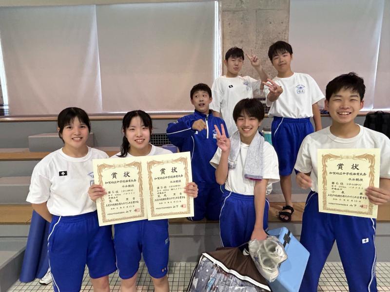 個人種目や、リレー種目では県大会出場タイムまで、のこり1秒・2秒という惜しいレースが沢山ありました。この悔しさをこれからの練習につなげ、次回の郡市新人大会、県新人大会で出場タイムを突破したり、自己ベストとタイムを更新したりできるよう応援して行きたいと思います。