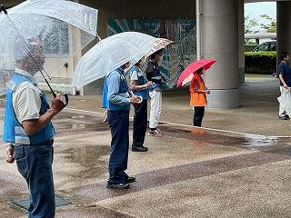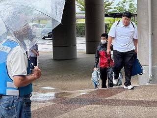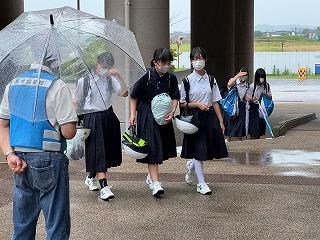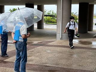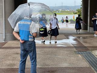本日はあいにくの雨模様でしたが、傘をさしながら雨に負けない元気なあいさつの中、生徒たちは登校してきます。