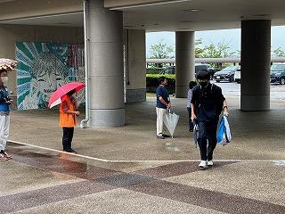 毎週水曜日、南中応援隊の方々に、玄関前であいさつ運動をしながら登校の様子を見守っていただいています。