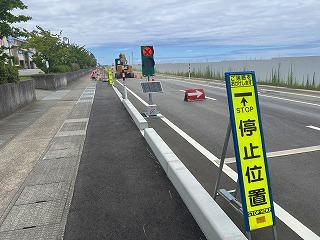 先日からお伝えしているとおり、本校前では道路工事が行われ、車両の対面通行が続いています。
