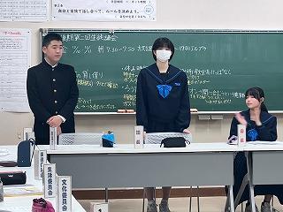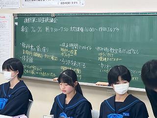 協議事項では、体育の時間が終わってからの移動がうるさいことやギリギリな時間に登校してくる生徒が多い件などが挙げられ、生徒たちで解決に向けて話し合われました。