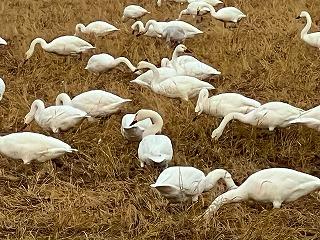 群れをなして、田んぼの一角に集まっている様子は、津幡町の冬の風物詩ですね。